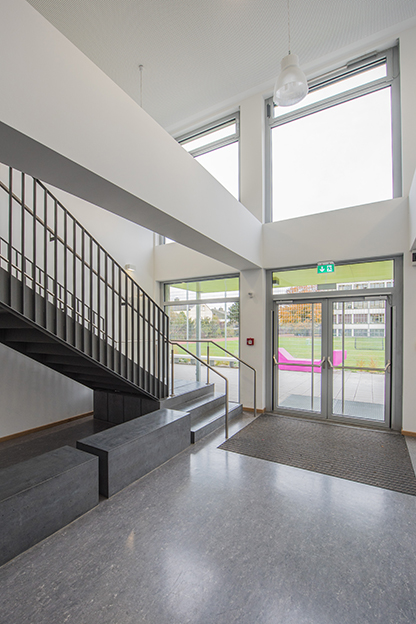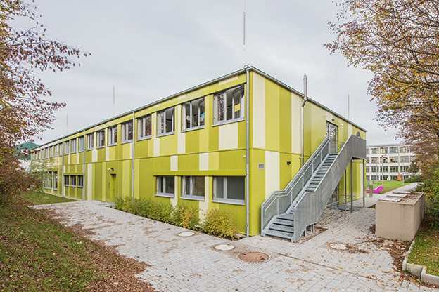 Die Qualität der Ausstattung und die Anforderungen an den Schallschutz, das Raumklima etc. entsprechen den Standards für Grundschulen / Hauptschulen bzw. Realschulen in München.