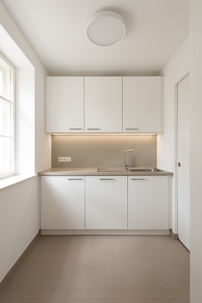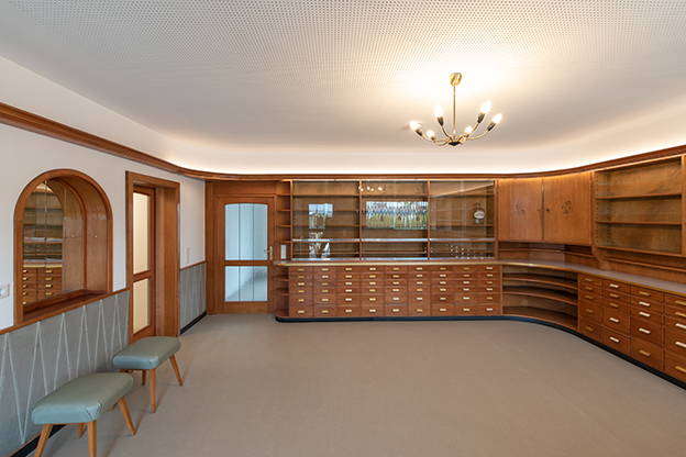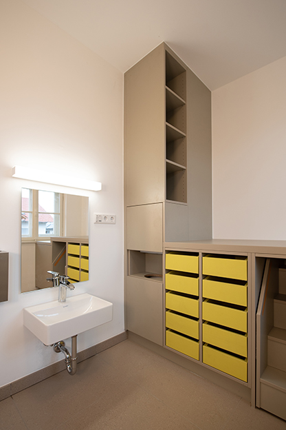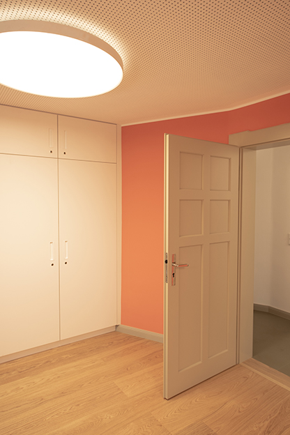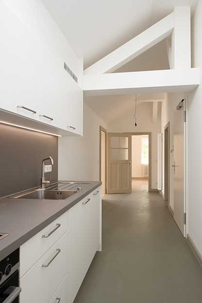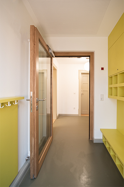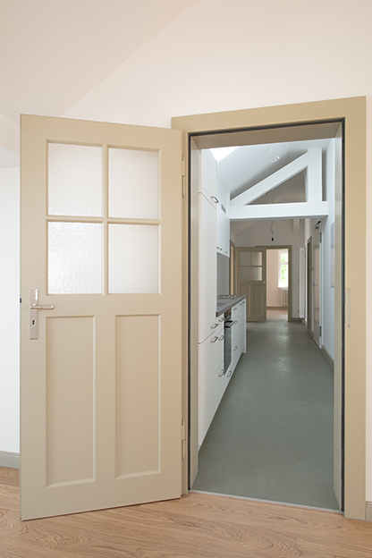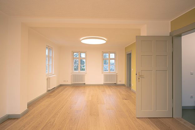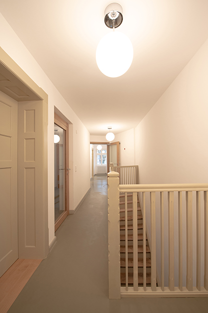 Die bestehenden Raumstrukturen blieben weitestgehend erhalten und wurden nur in Teilen einer geänderten Nutzung und den Anforderungen des Brandschutzes angepasst.