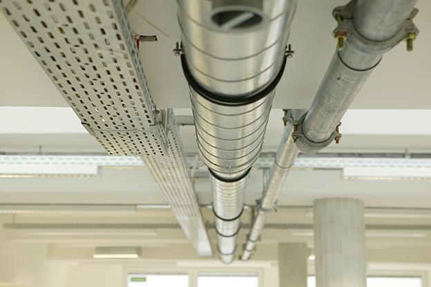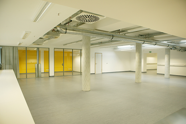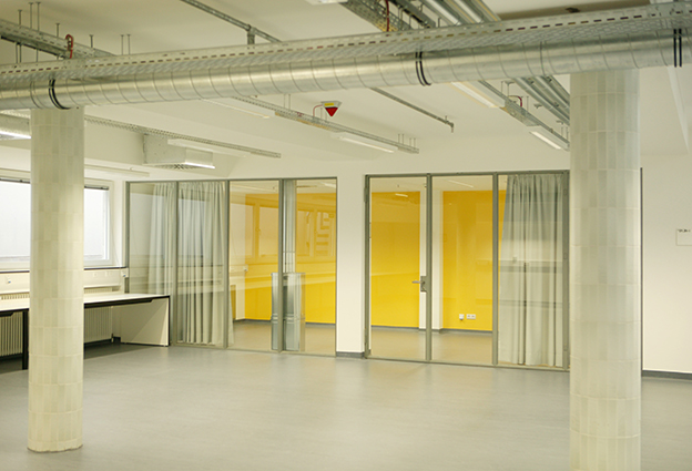 Die Gebäudetechnik wird gezeigt und so zum strukturellen Raster. Angegliedert ist ein Konferenzraum mit sinnlichem Grundtenor, wodurch Spannung entsteht. Die Forschungsfläche ist in Grau- und Metallictönen gehalten und wird mit Tageslicht aus Oberlichten erhellt. Alle Trassen sind offen geführt und roh belassen.