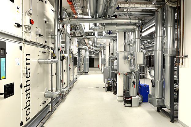 - 2.Obergschoß: Dachfläche mit Lüftungskanaltrassen sowie Technikräumen
