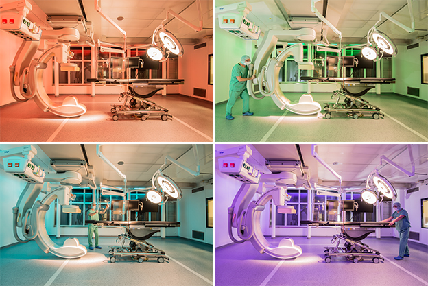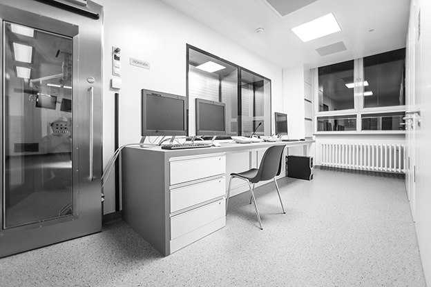 Der nüchtern wirkende Ausbau des OP-Saals birgt viele Extras: die weißen Wandpaneele sind mit einer Flächenheizung bestückt. In die Flurwand wurden Durchreicheschränke integriert. Ein RGB-Beleuchtungskonzept ermöglicht individuelle Farbgestaltung. Im Überwachungraum verbirgt sich hinter fünf unscheinbaren Schallschutztüren die komplette Technik des Systems. Im Schreibtischmöbel – einem Spezialentwurf – werden alle technischen Komponenten nahezu unsichtbar integriert.