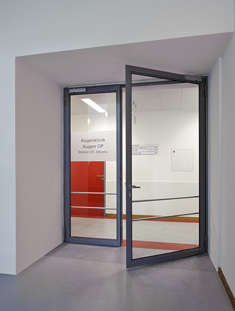 Der betroffene westliche Krankenhausteil wurde als Krankensaal erbaut, ermöglicht also einen relativ freien Grundriss. Beide Stationen werden für die Augenklinik zusammengelegt und umfassen nun 25 stationäre Betten. Neben dem normalen Nebenraumprogramm wird eine Lounge für Privatpatienten in gehobenem Standard eingerichtet.